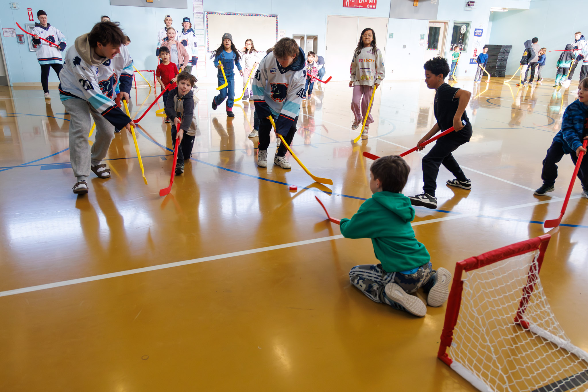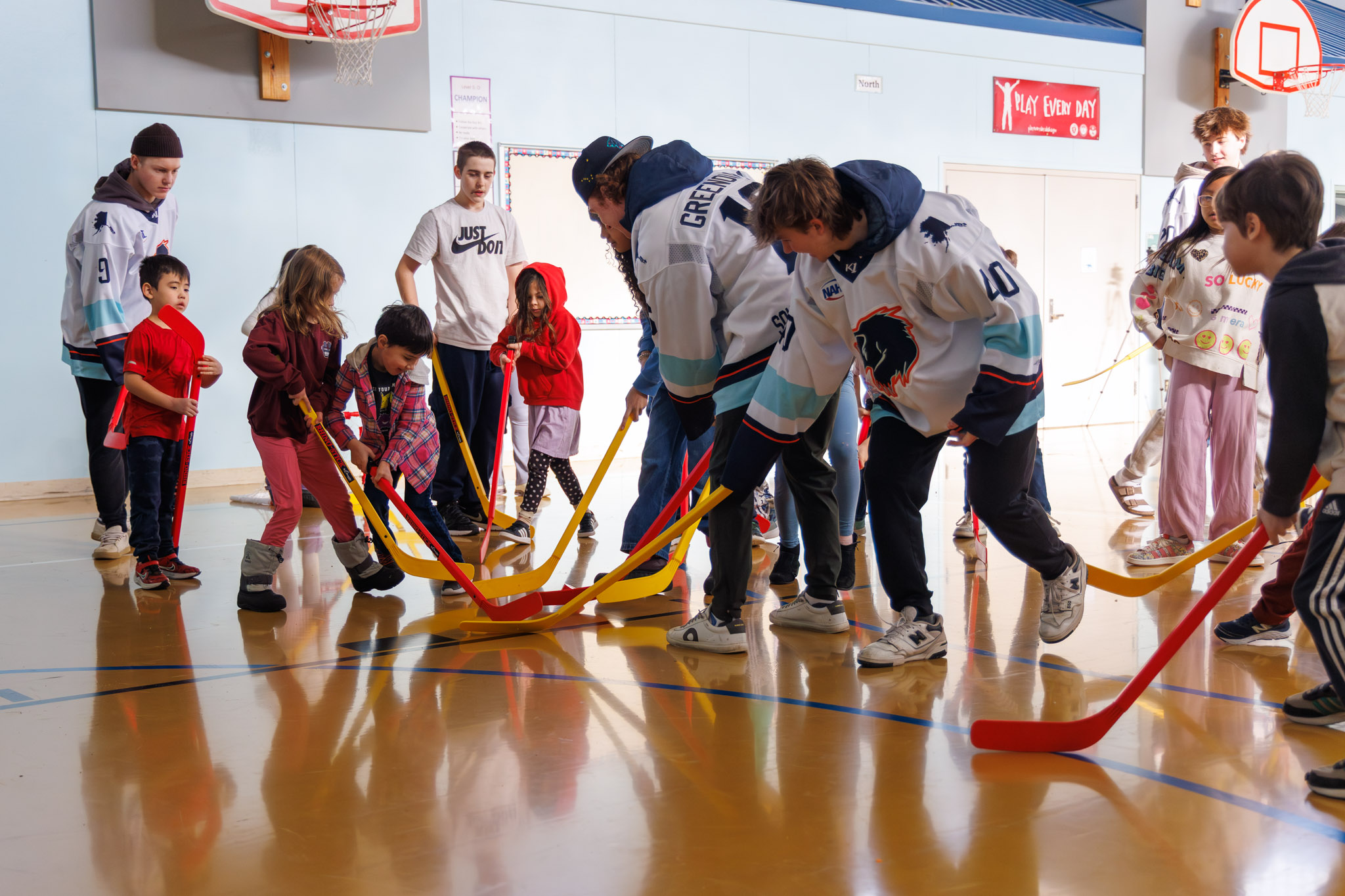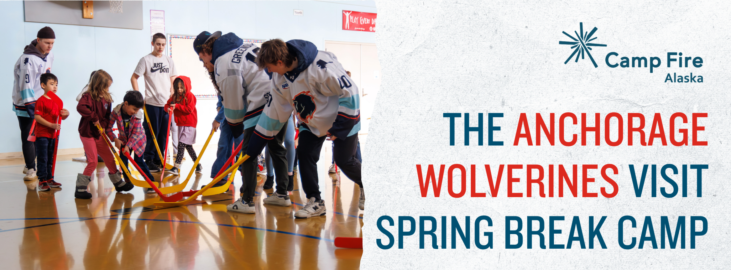 We had a pack of wolverines running around the gym during Spring Break Camp—but don’t worry, they were of the hockey player variety! Thank you, Anchorage Wolverines, for spending an afternoon playing floor hockey with our kids.