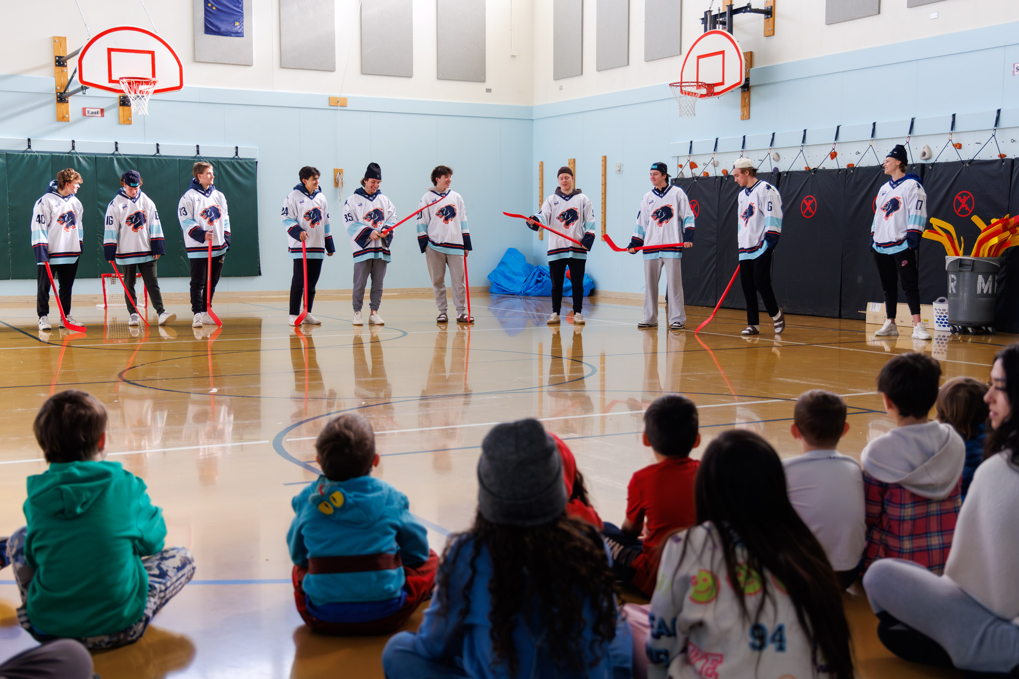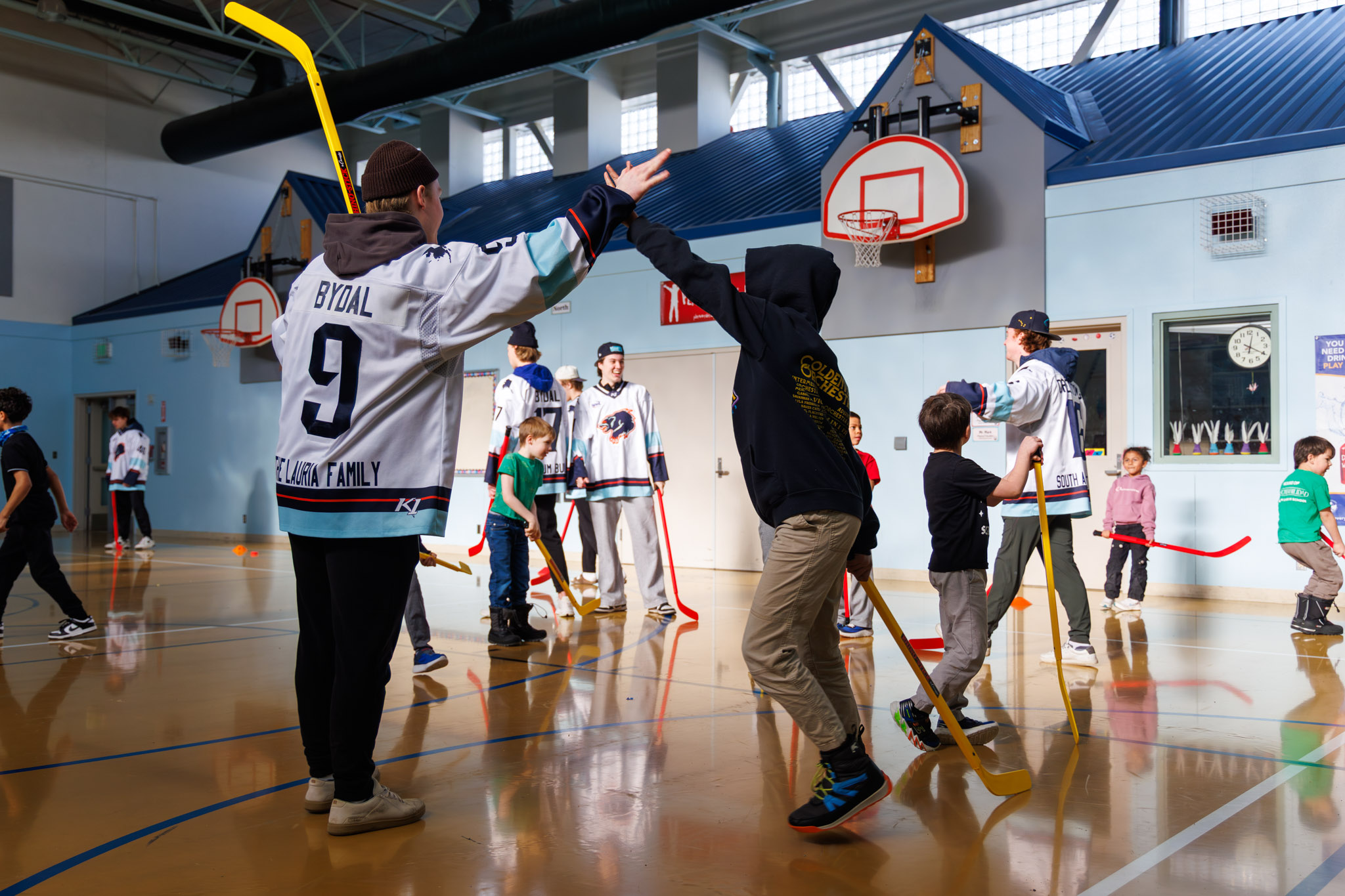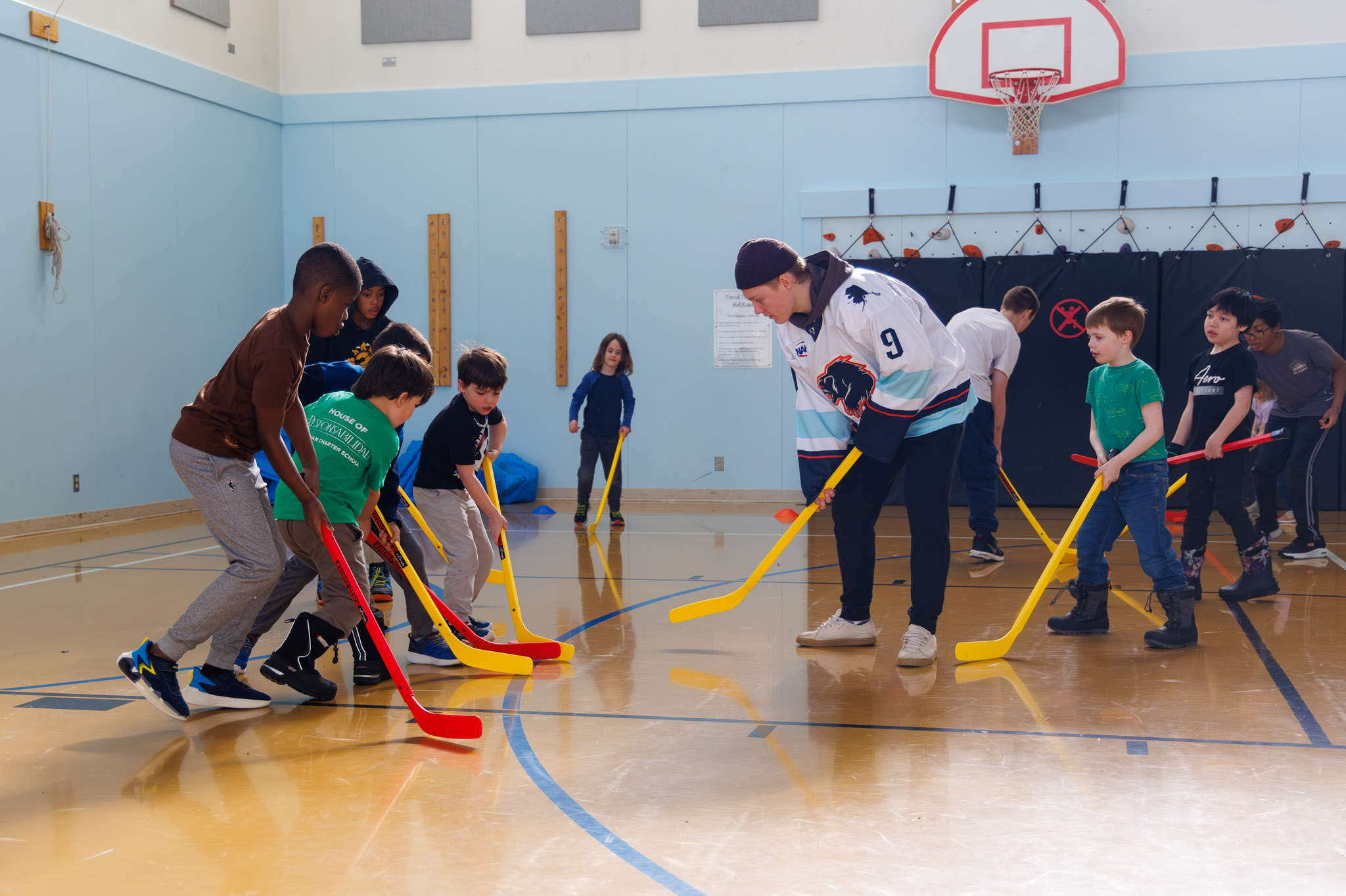 We had a pack of wolverines running around the gym during Spring Break Camp—but don’t worry, they were of the hockey player variety! Thank you, Anchorage Wolverines, for spending an afternoon playing floor hockey with our kids.