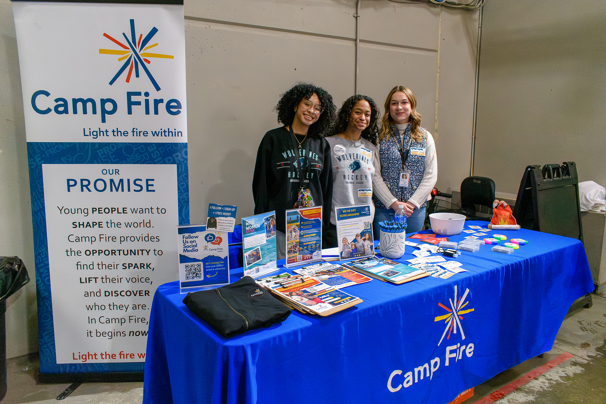 And an extra special thanks to the team for providing 100 tickets for our Camp Fire families to attend a game. Kids waved giant foam wolverine claws and cheered as the Wolverines beat the Kenai Brown Bears 5-1. Families (and staff!) and an absolute blast.